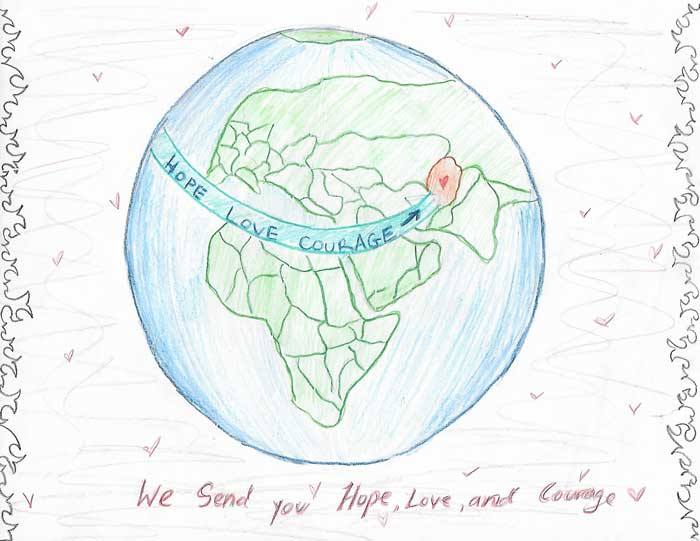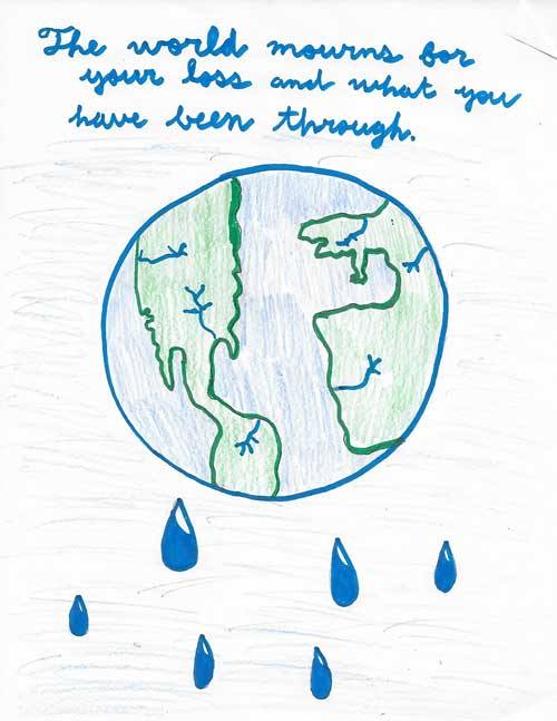 | The world mourns for your loss and what you have been through. | | We send you hope, love, and courage. | | "Hope. The only thing stronger than fear."