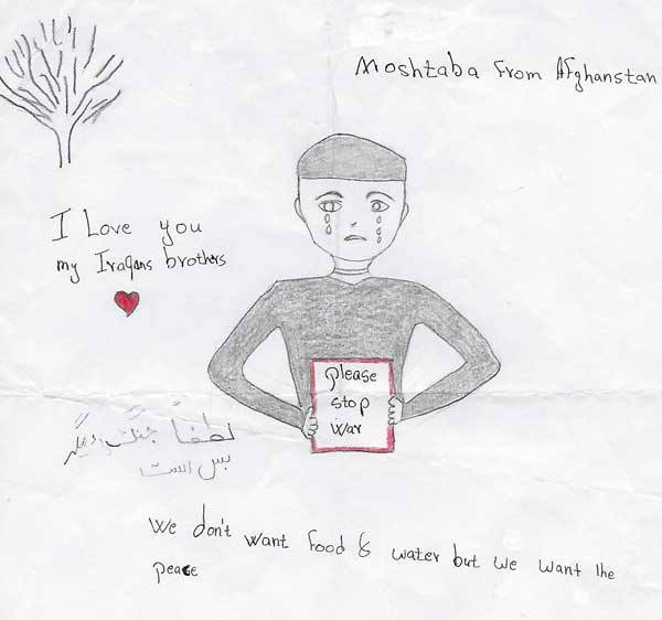 I like Afghanistan and Iraq. I am 15 years old and living in Kabul, Afghanistan | | This is Afghanistan. War is here. In war people are upset.